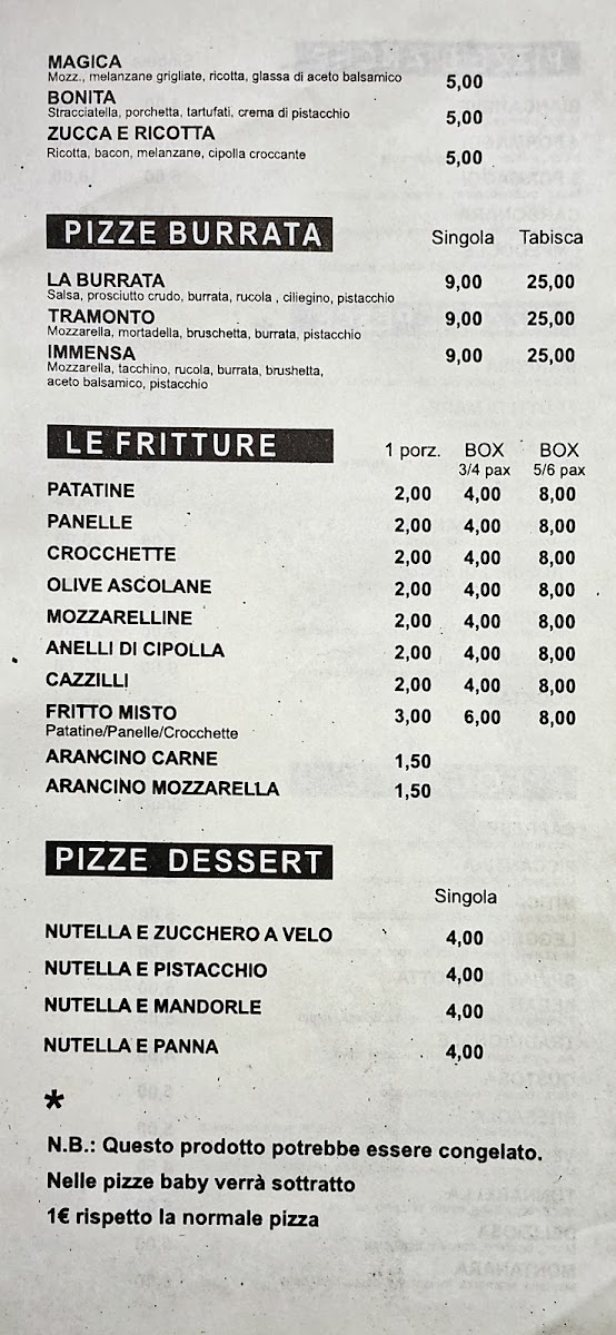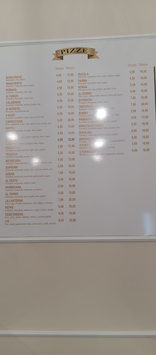 Pizzeria La Lanterna Menu